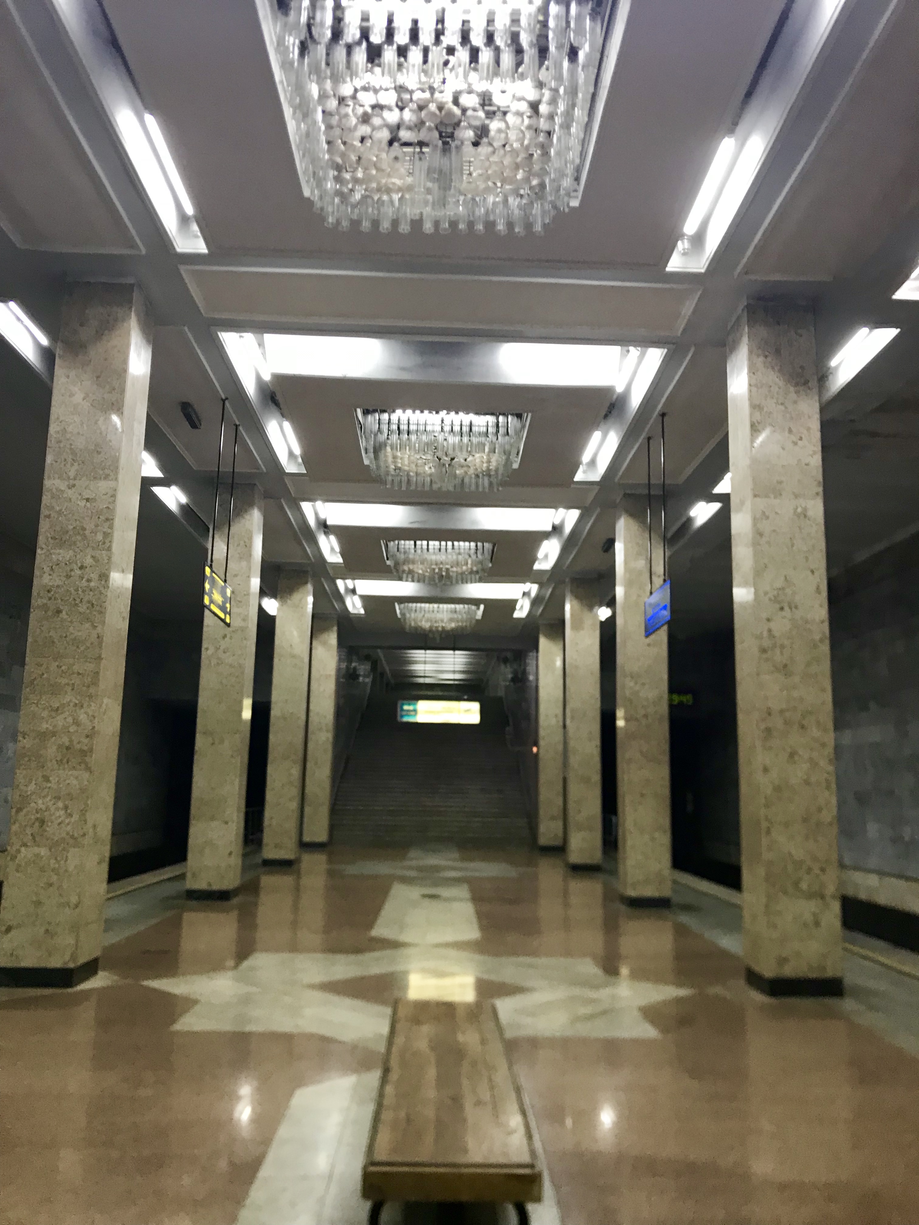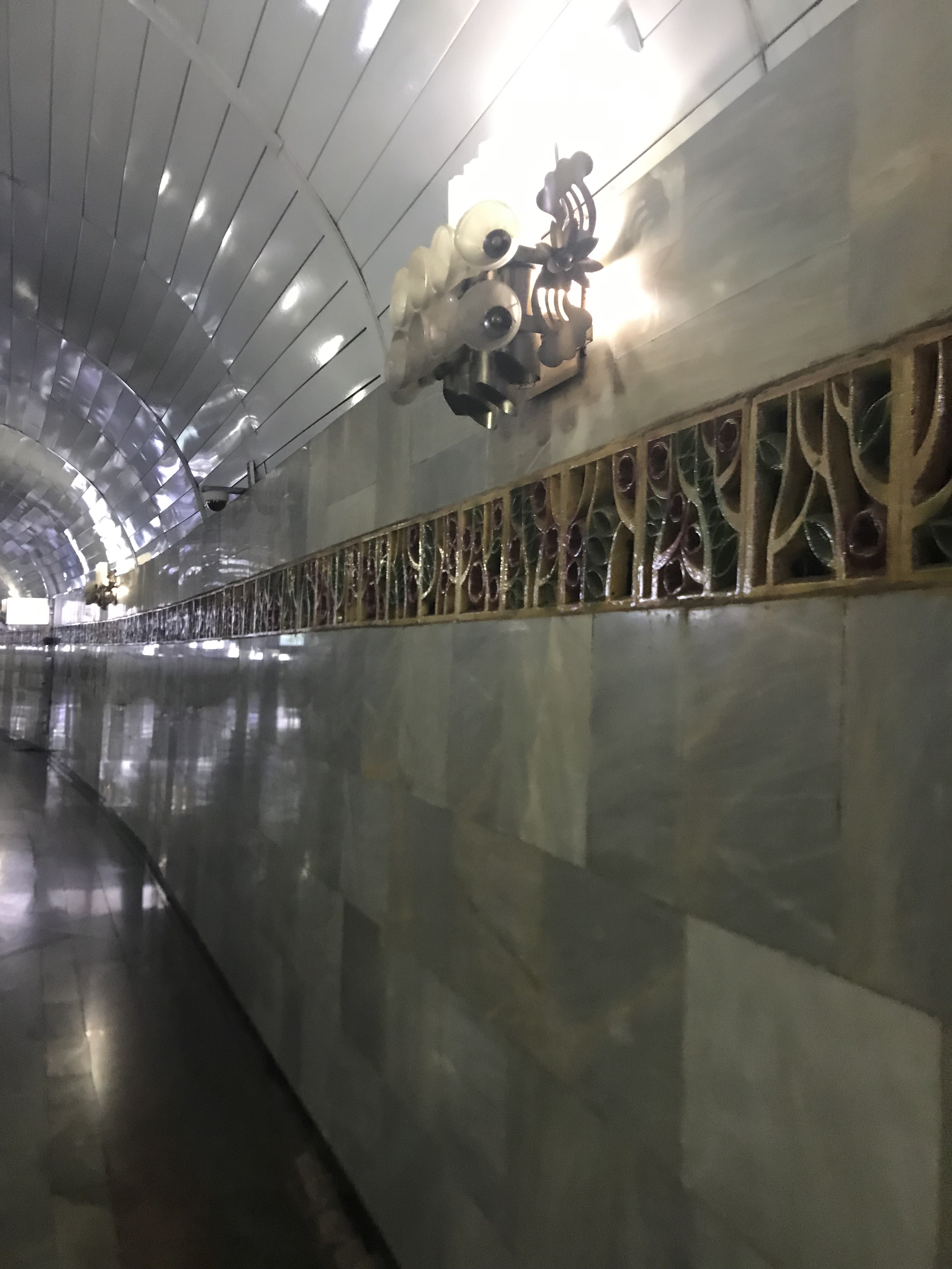 Larger perspective of the Uzbekistan station- the light fixtures resemble cotton plants, as Uzbekistan was a main source of cotton farming during the Soviet Union.