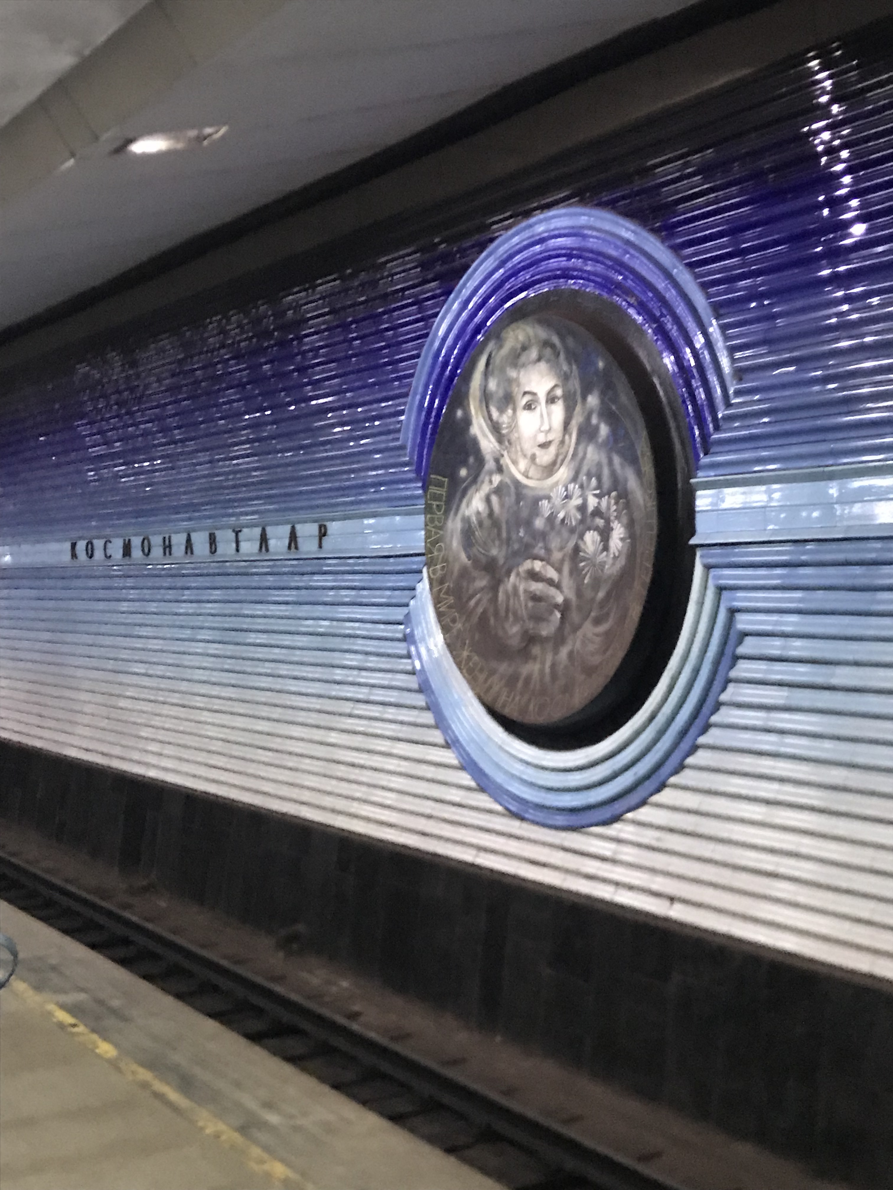 Kosmonavtlar Station, honoring Kosmonauts from the Soviet Union. This photo is of Valentina Tereshkova, the first woman in space.